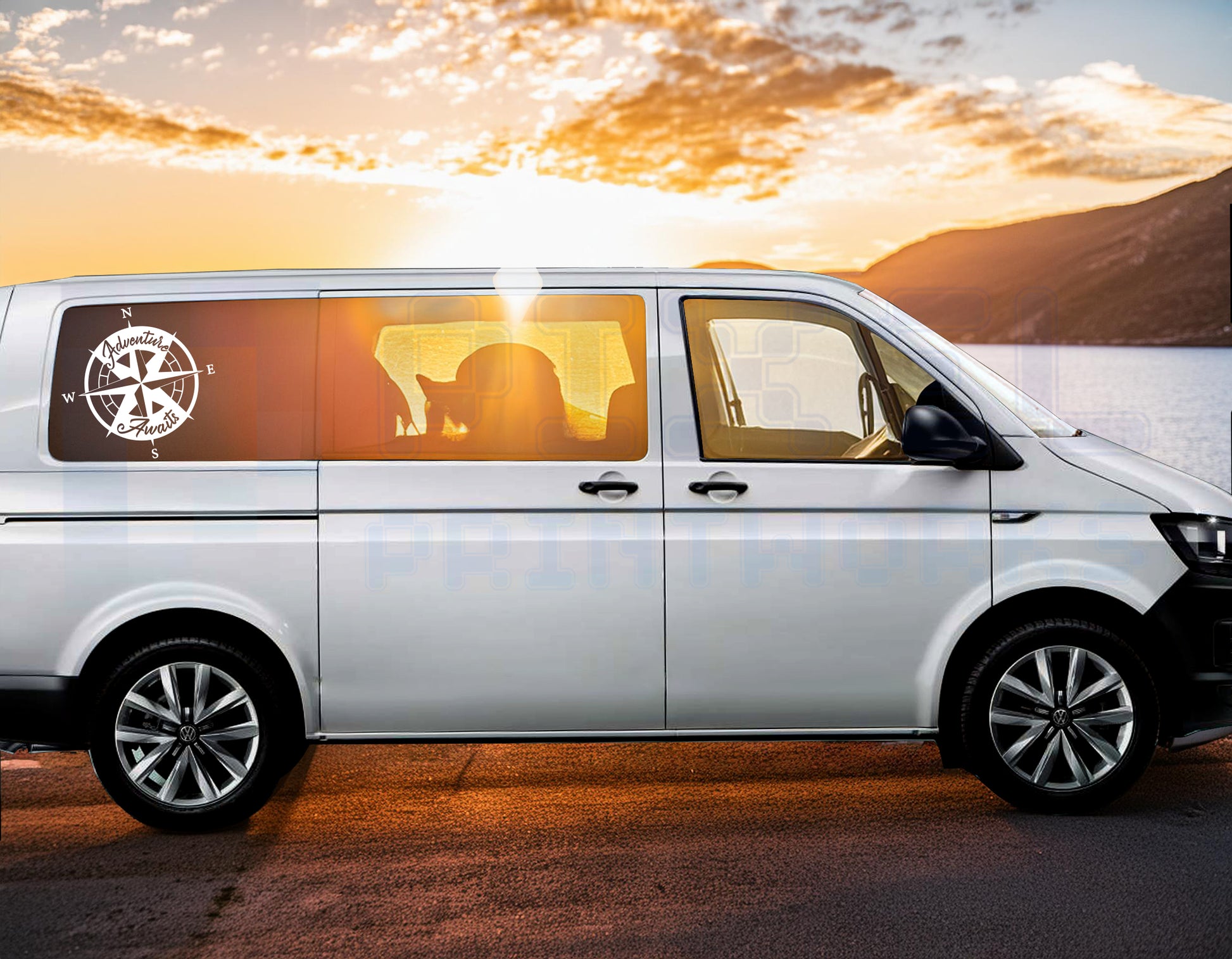 Adventure awaits – navigate in style. Set your sights on the open road with the Adventure Awaits Compass Decal from Pixel Printworks. Featuring a bold compass rose paired with elegant script, this vinyl graphic is the perfect addition to any van, campervan, or motorhome built for exploration.